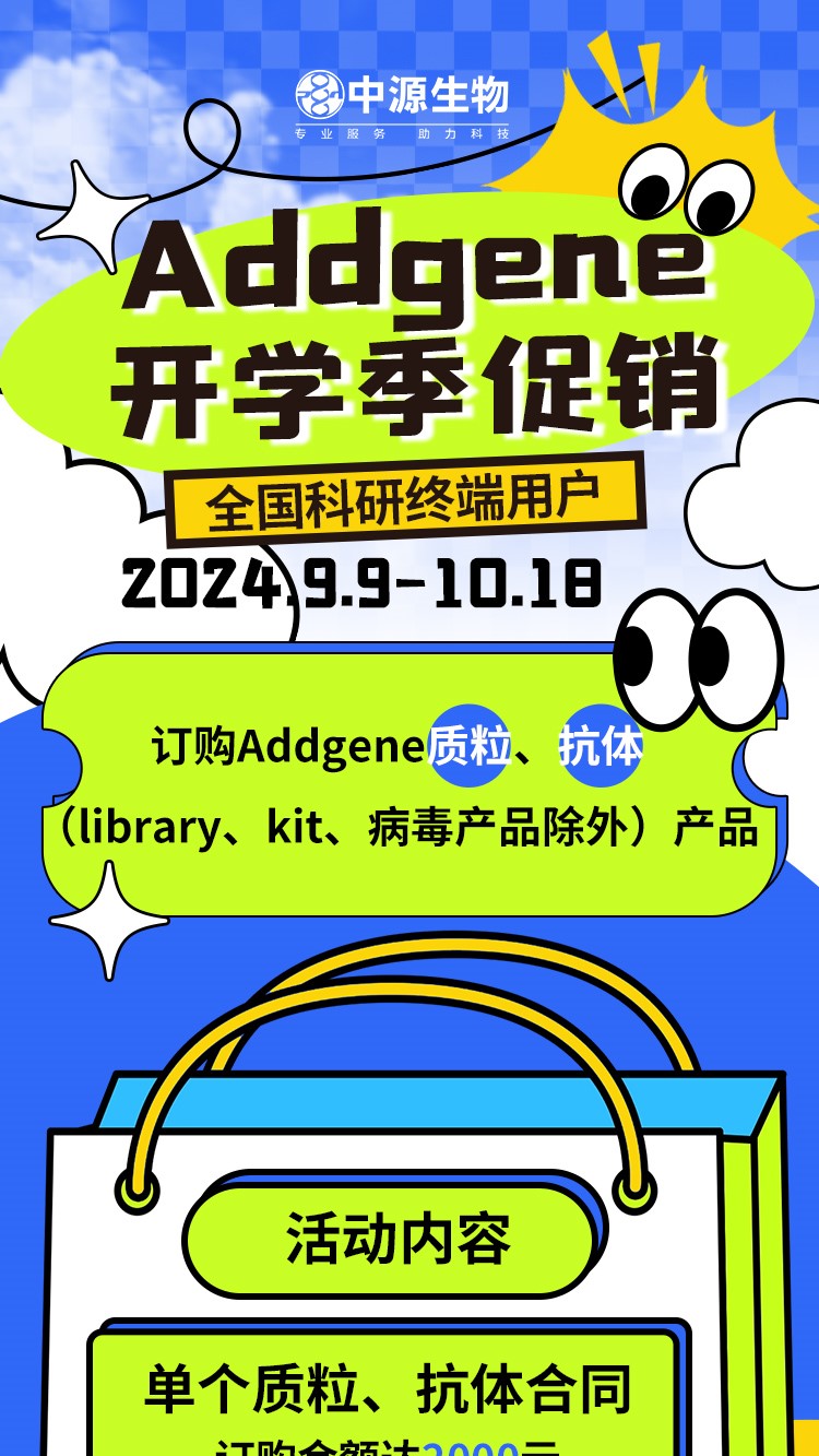 Addgene开学季促销 时间:2024.9.9-10.18 全国科研终端用户2024-09-06 16:09:00.0