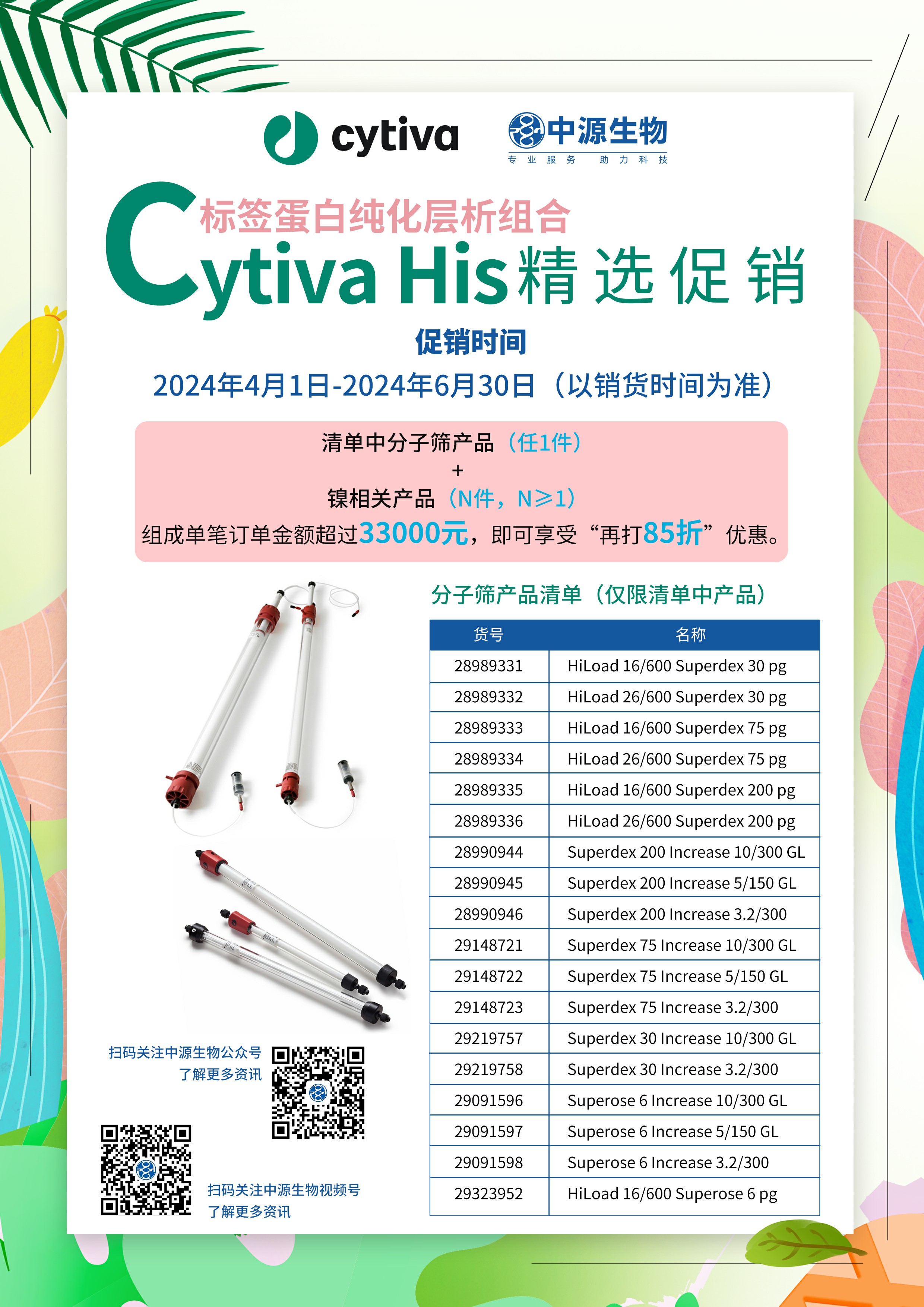 Cytiva分子筛搭配镍柱及镍填料大放送购买分子筛产品清单中1件 镍相关产品清单中任意产品 组成his标签蛋白纯化组合 单笔订单金额大于3300...2024-04-01 11:10:00.0