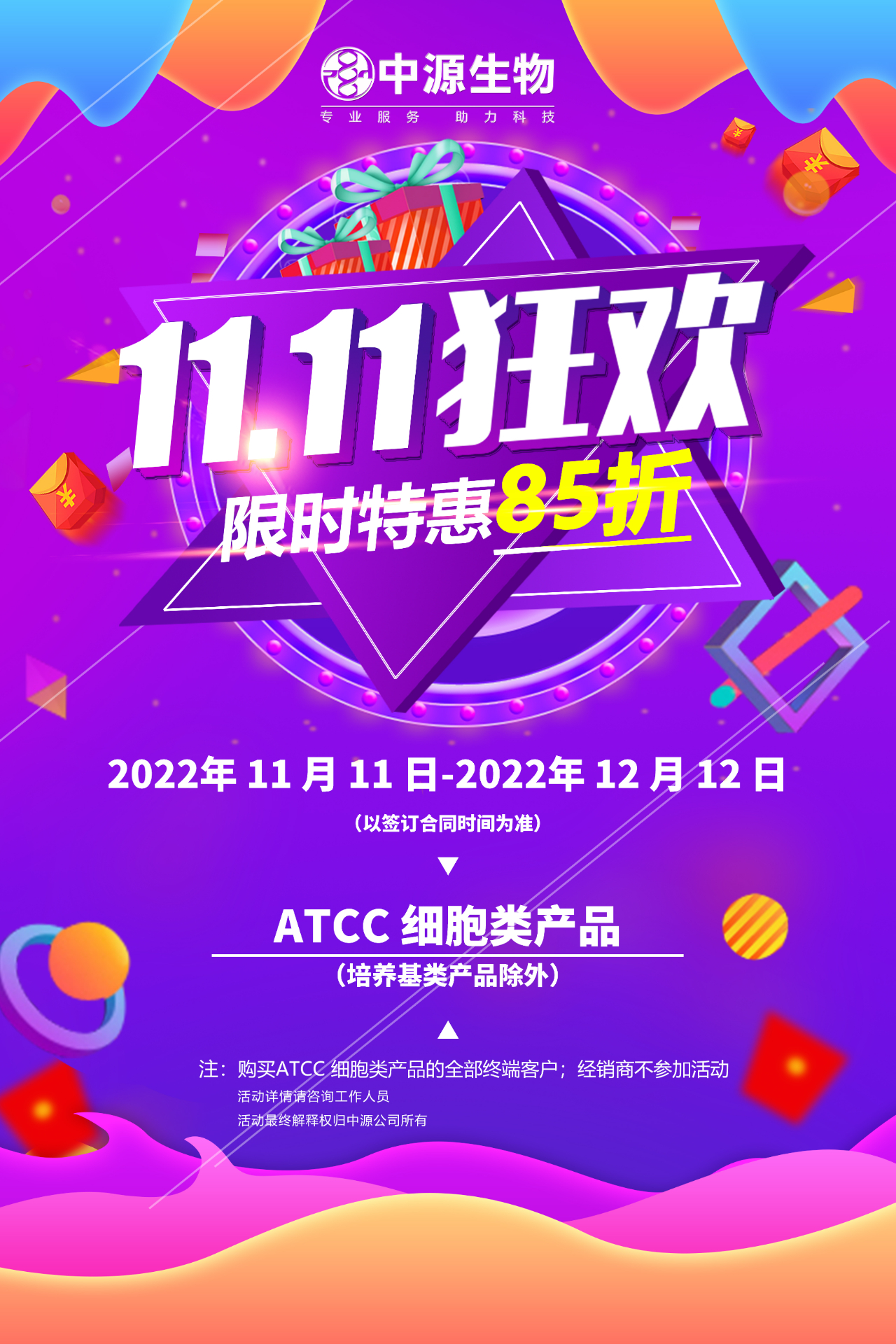 双11来啦 ATCC 细胞类产品限时特惠85折 2022-11-11 09:51:00.0