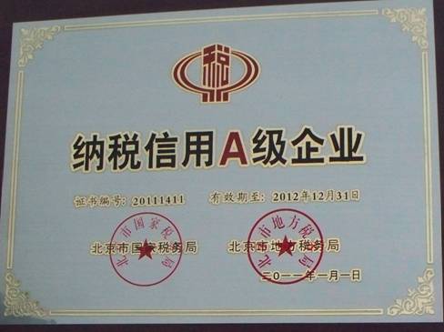 获得纳税信用A级企业荣誉是对我公司财务管理水平的充分肯定,北京中原公司成立10年以来,秉承诚信经营、依法纳税的理念,自觉遵守税收相关法律法规,保持了按时足额纳税的良好纪录,为打造守法经营、依法纳税的社会和谐氛围亦做出了自己应有的贡献。