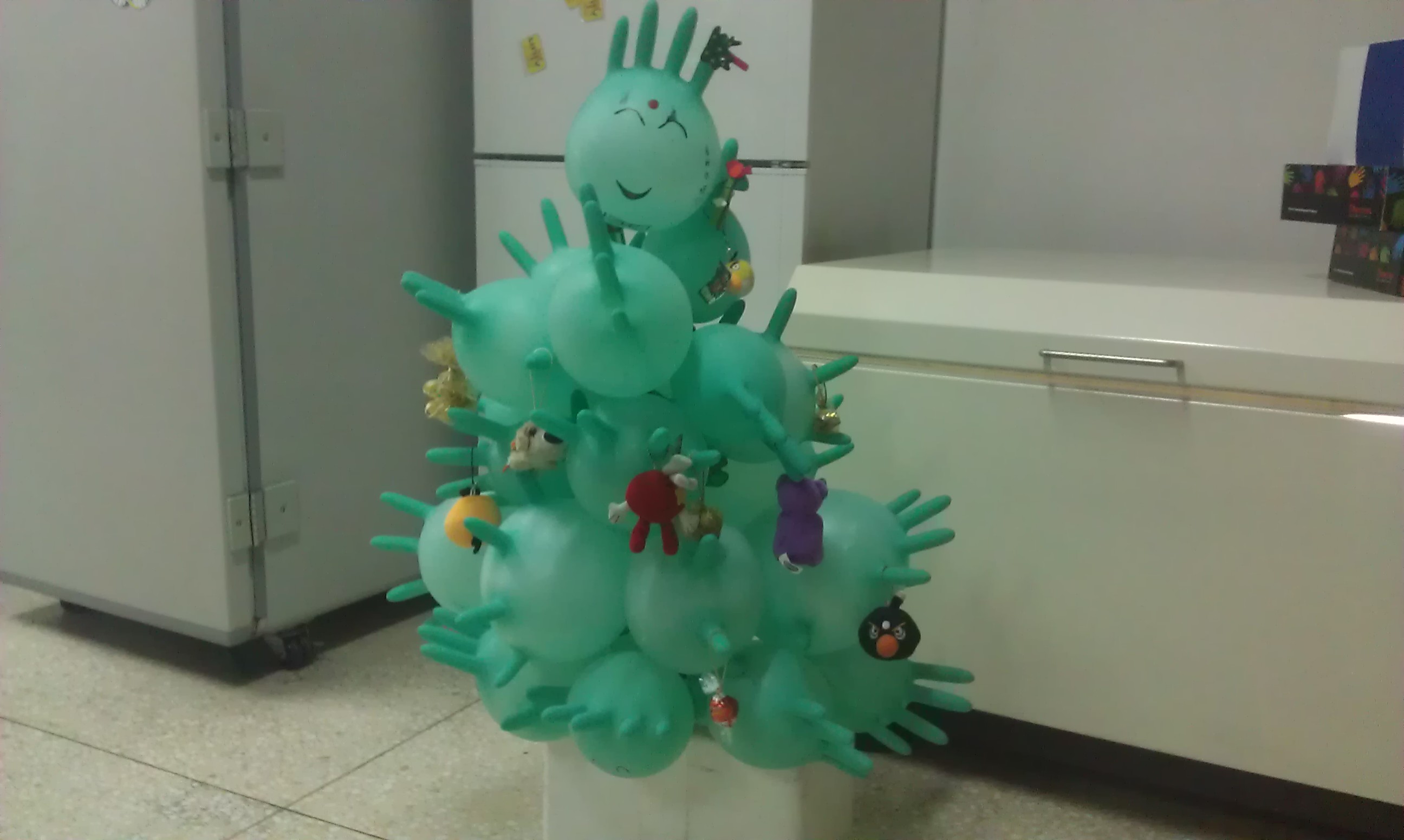 “盼望着盼望着,2013年圣诞老爷爷就要来啦,我们生机勃勃的圣诞树也越发茁壮啦~大家不妨拿起实验室的干冰和手套,一起DIY一棵美丽的圣诞树吧!