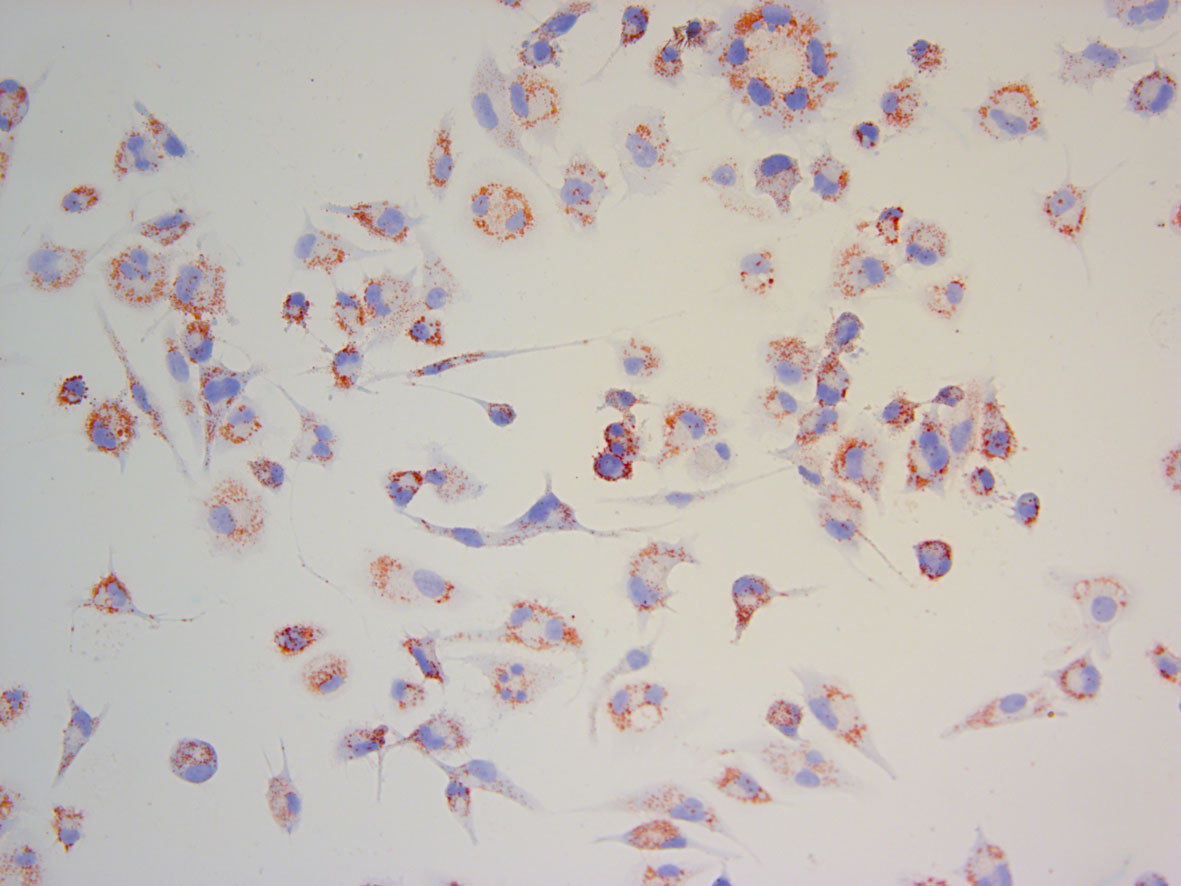 “荧光显微镜下观察到的尼罗红染色后的寇氏隐甲藻,像满天繁星一样耀眼!”