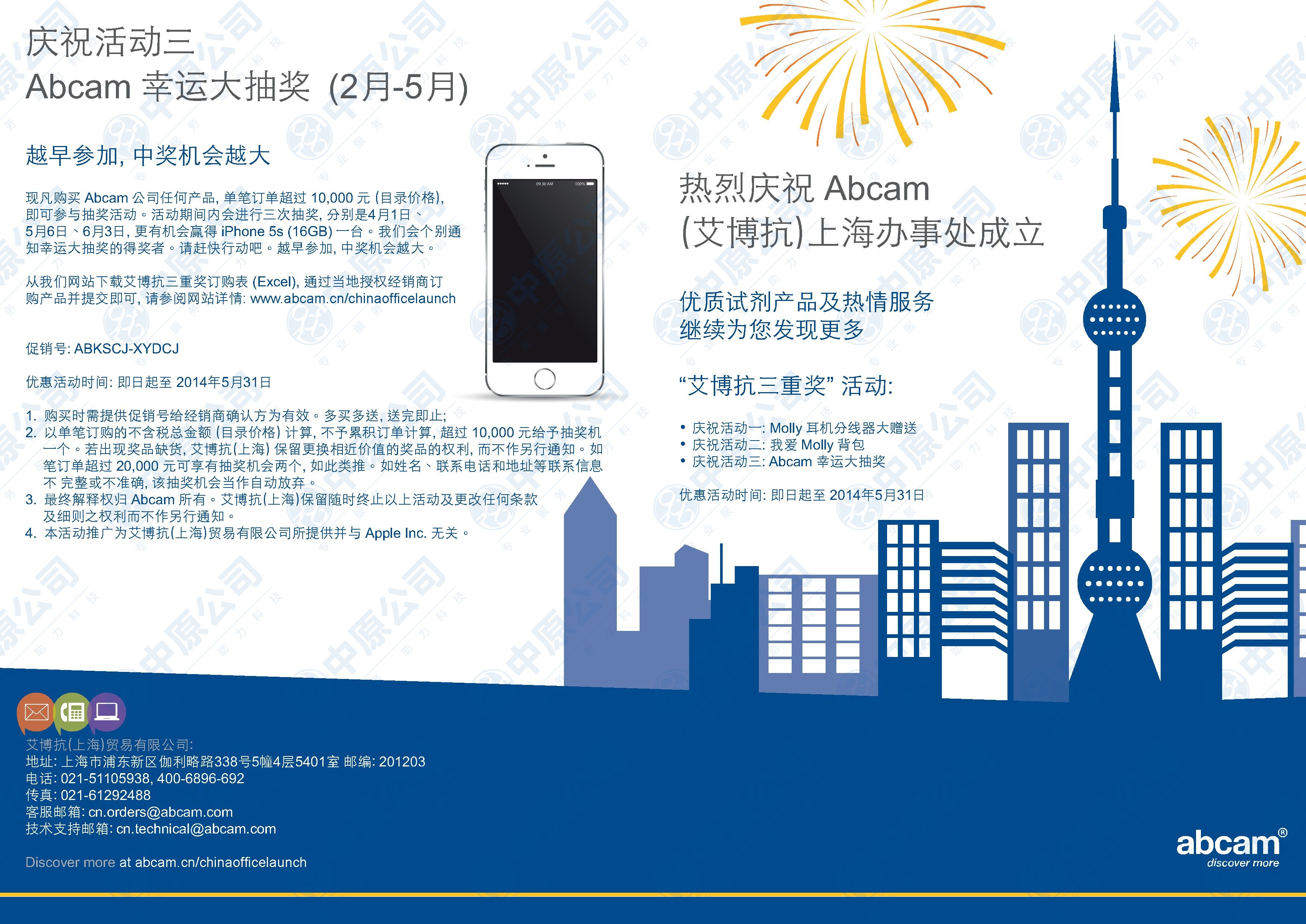 为庆祝Abcam(艾博抗)上海办事处成立,Abcam现举办“艾博抗三重奖”活动: