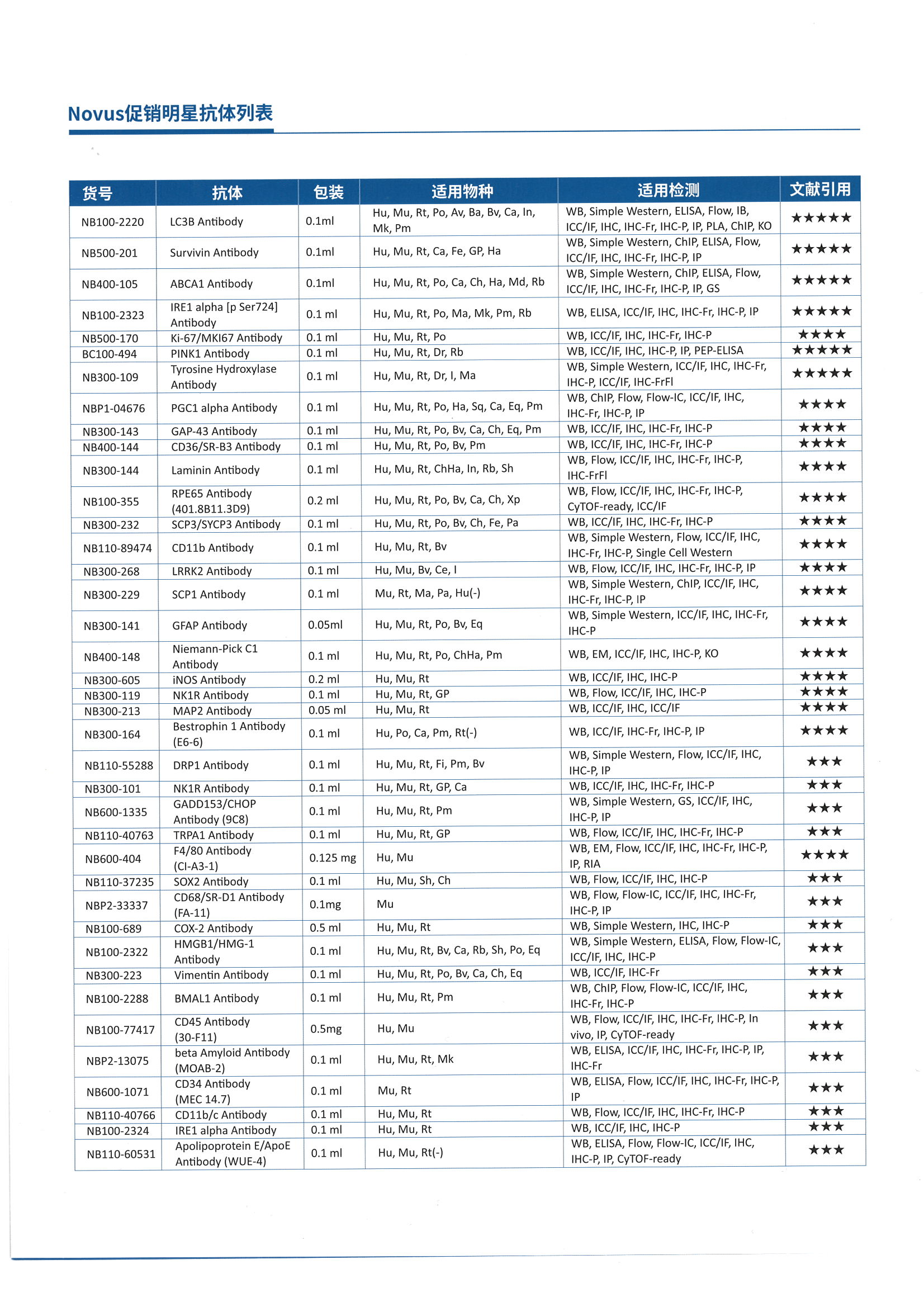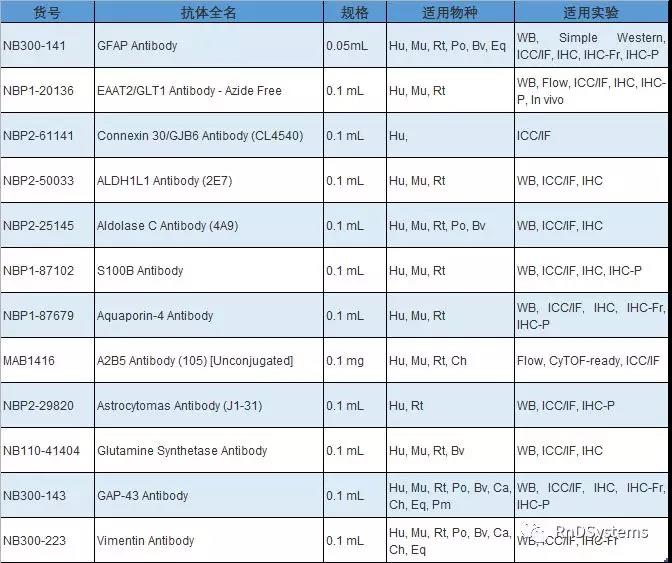 以下为我们推荐的研究星形胶质细胞抗体列表: