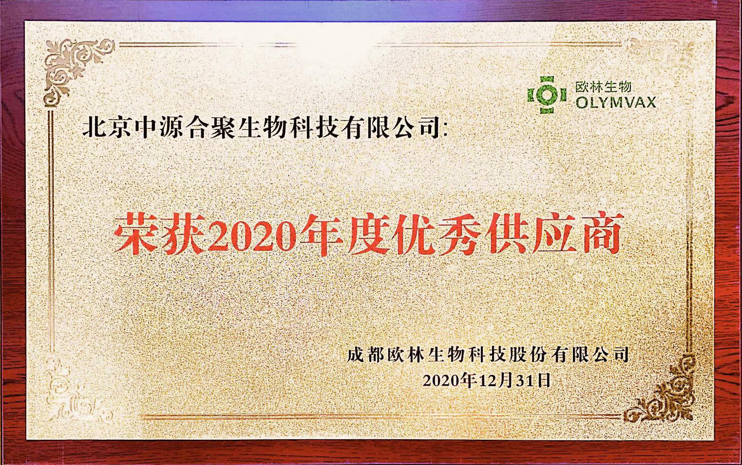 欧林生物“2020 年度优秀供应商”称号
