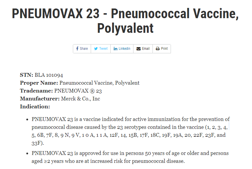 美国FDA官网PPV23信息,图片来自网络