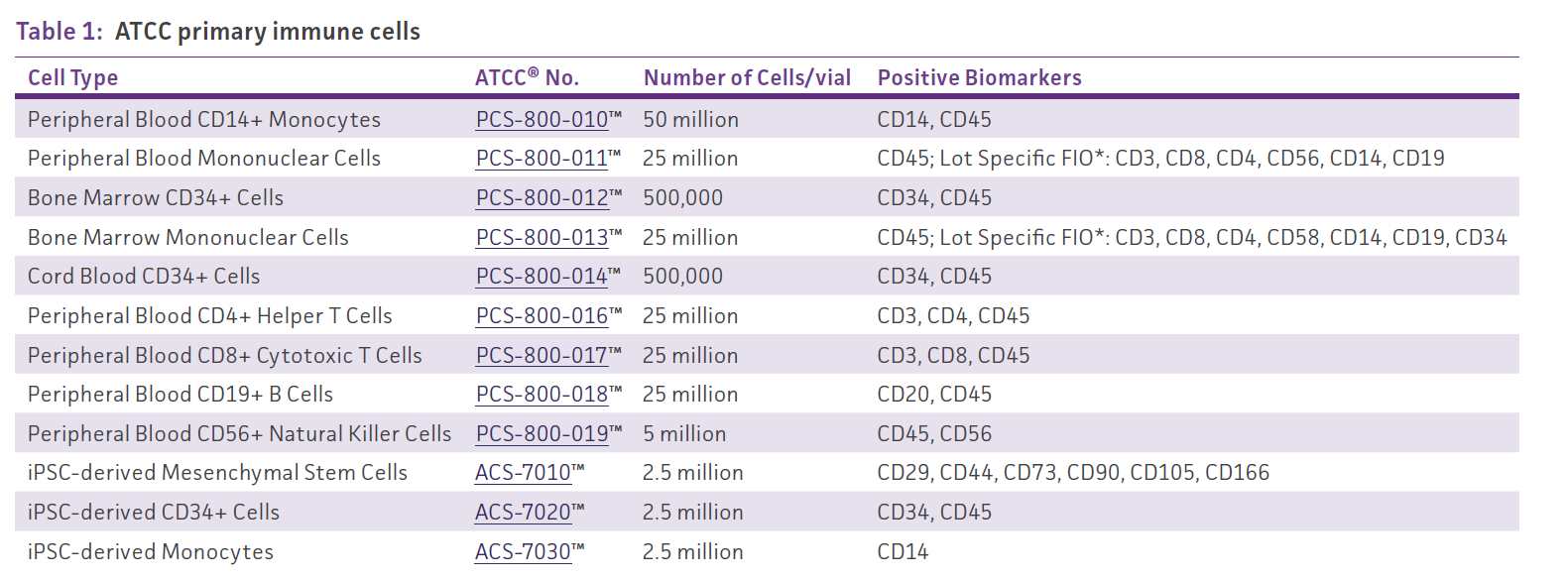 Immuno-oncology | (一) ATCC人类原代免疫细胞