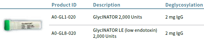IgGZERO 特异性水解IgG F c结构域上的N-聚糖。该酶以冻干粉的形式供应。