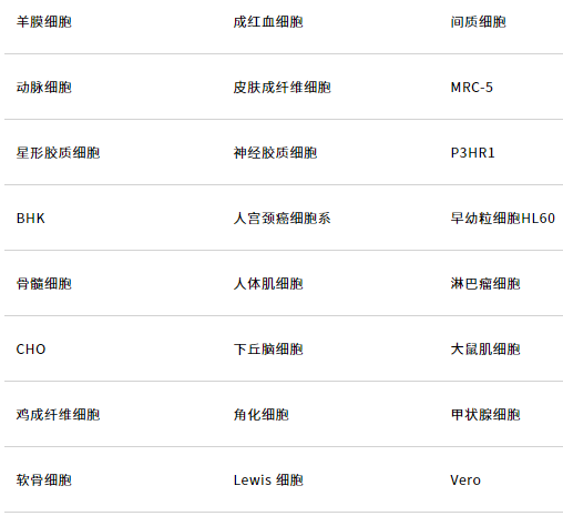 用Ultroser™ G血清替代品成功完成测试所用的细胞包括: